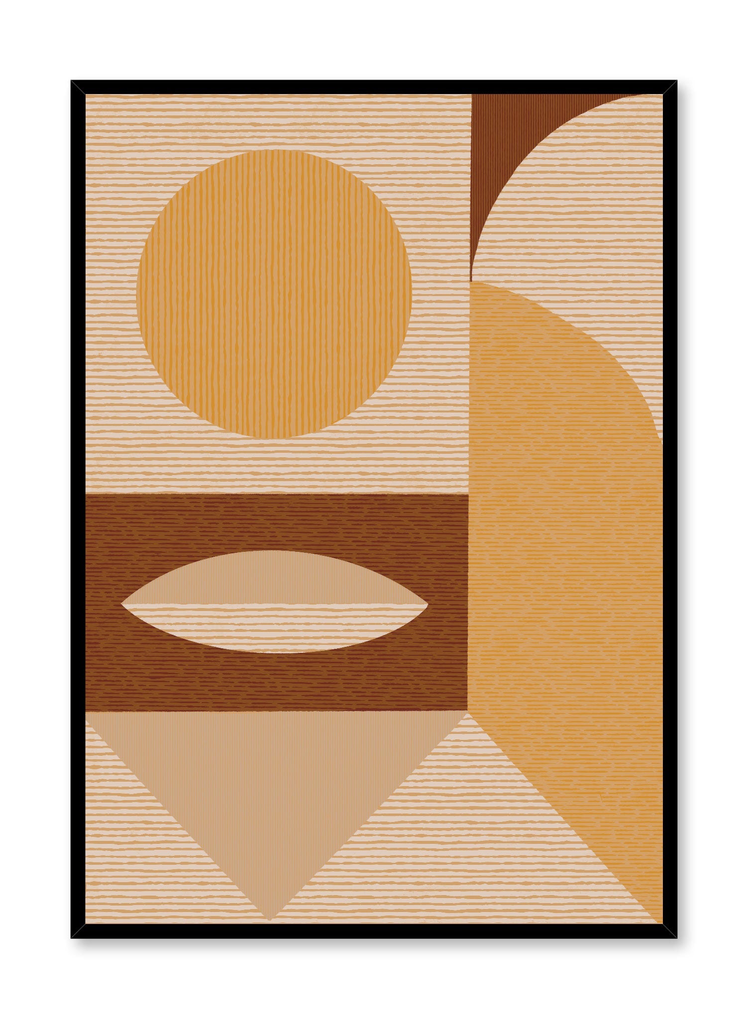 Texture? Check. Color? Check. Style? Double check! The 70s Dream art print is a must-have for all those who simply adore the 70s aesthetic. This textured abstract poster features boho geometric shapes like arches and circles in a warm color palette of orange, brown and beige. Fine lines create the illusion this poster is made from linen and cotton fabrics.